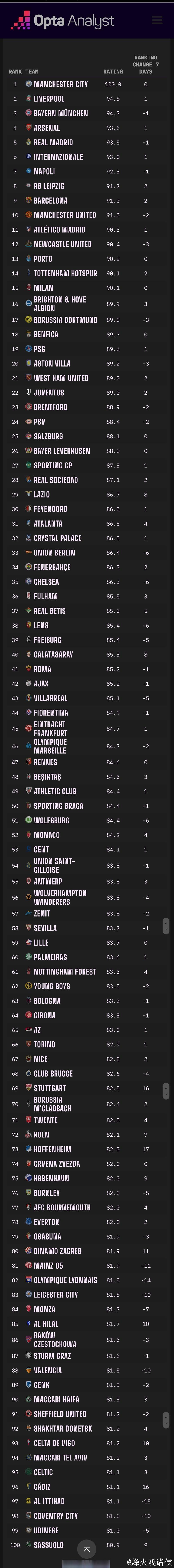 2026-02-26T02:51:45+08:00 Opta全球俱乐部实力排名:阿森纳领衔,拜仁、巴黎上榜 Opta最新公布的全球俱乐部实力排名在足坛掀起了不小的波澜,在这份基于大数据模型与表现评分体系得出的榜单中,英超劲旅阿森纳高居第一,成为目前全球综合实力最强的俱乐部,而德甲霸主拜仁慕尼黑和法甲豪门巴黎查看更多